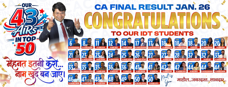 ''Thanks for teaching me beautifully!! Conceptually learning as well as question practice.. In my 1st attempt that is November attempt, I just failed by 1 marks in Taxation (only 15 in IDT) but now during my preparation for May 24,I learned from your fast-track batch and score exemption in taxation.. Thankyou so muchh sir!! ♥️''